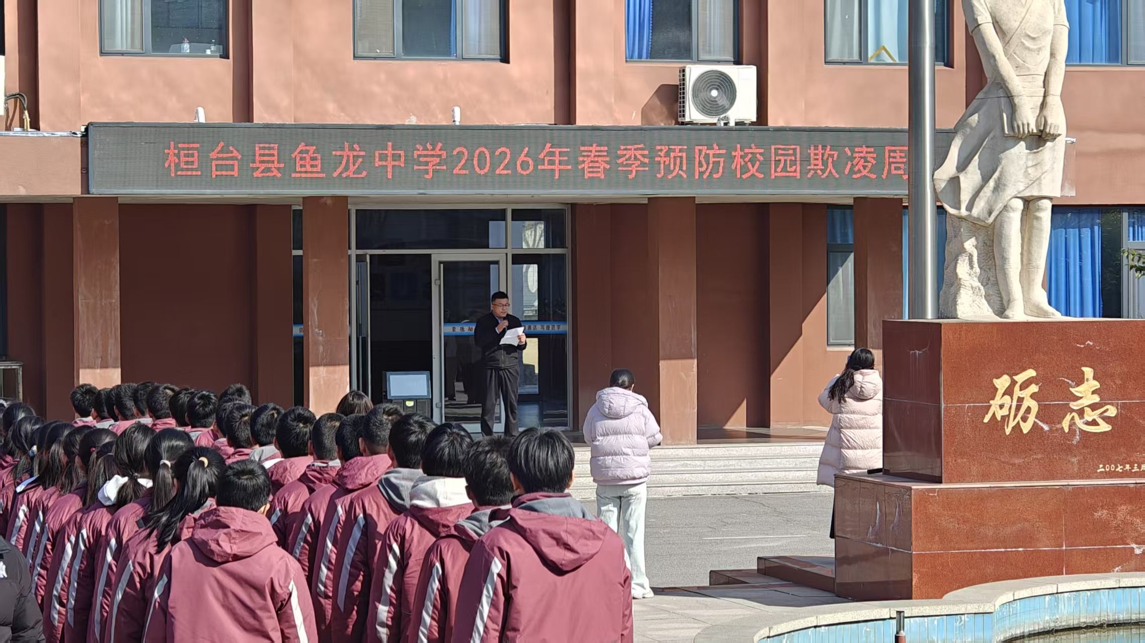 为加强安全管理,营造和谐、安全的校园环境,桓台县鱼龙中学开展了“预防校园欺凌,共建和谐校园”宣传周活动。