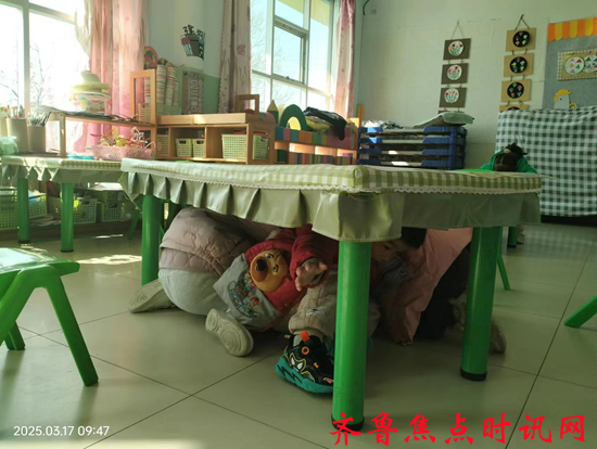 东营市利津县汀罗镇中心幼儿园成功举行了一场地震防震演练。