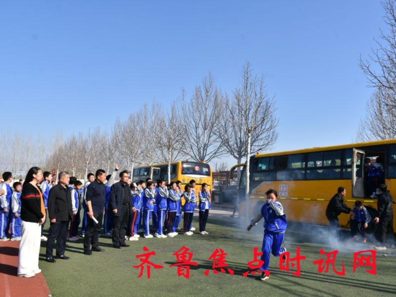 筑牢安全防线 守护学生平安—山东淄博高青县第三中学举行校车紧急疏散演练