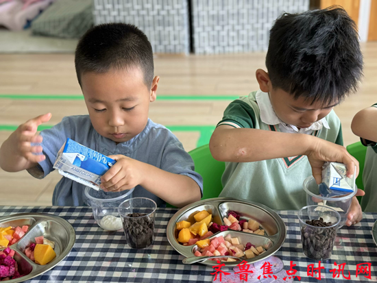 东营区文汇街道中心幼儿园开展了一场充满趣味与甜蜜的酸奶水果捞DIY活动。