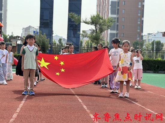 东营区文汇街道中心幼儿园举行了一场庄严而又充满童趣的升旗仪式。