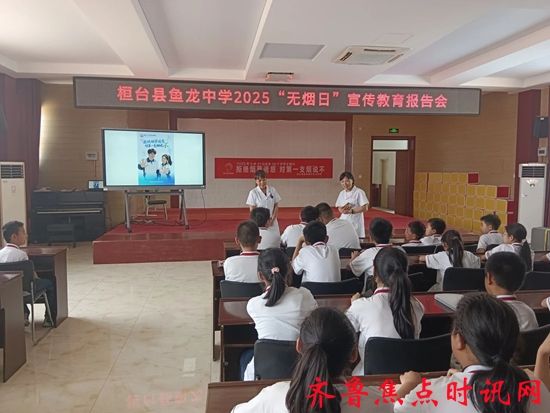 山东淄博桓台县鱼龙中学积极开展主题宣传活动,向同学们发出“拒绝烟草诱惑 对第一支烟说不”的倡议。