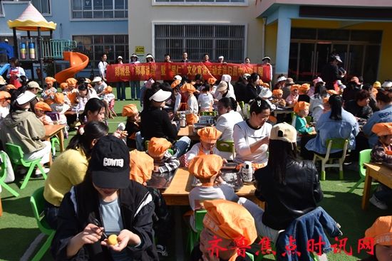 临沂市郯城县归昌乡新时代文明实践所、乡妇联、乡中心幼儿园联合开展彩色面食制作亲子志愿服务活动。