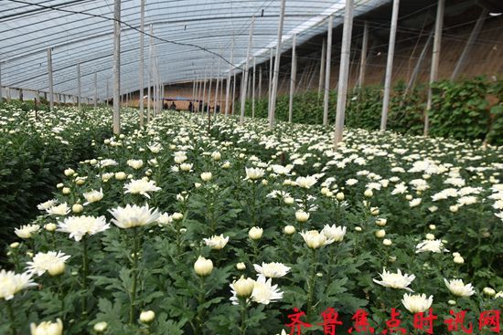 眼下,走进山东临沂郯城县归昌乡关庙村大棚菊花种植基地,放眼望去,白色菊花怒放正艳,长势喜人。