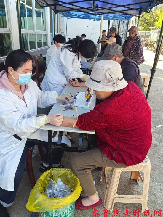 5月13日,山东临沂郯城县花园镇卫生院携手朝阳社区,为社区内60岁以上的老年人开展免费健康查体活动。