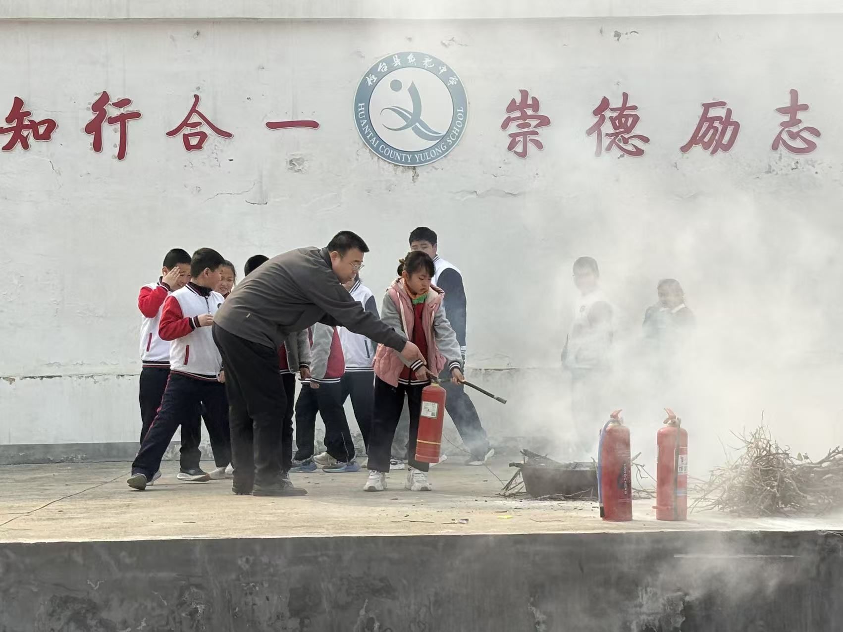 淄博市桓台县鱼龙中学举行了消防安全应急疏散演练活动。