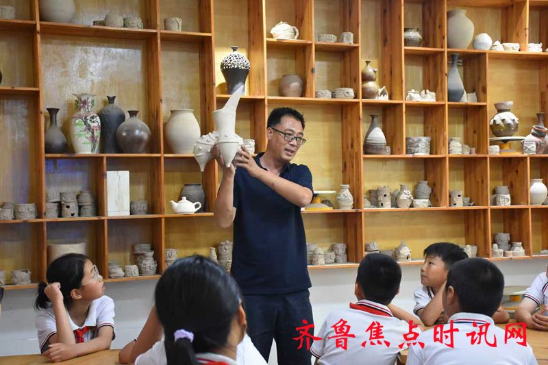高青县中小学生社会实践学校积极响应教育部关于“推进中华优秀传统文化进校园”的倡议,组织教师深挖本地优秀非遗文化和传统技艺,开发了《陶艺》和《烙画》两个深受学生喜爱的非遗体验课程。烙画课上,市级非遗传承人蔡玲玲老师的精湛技艺博得同学们的阵阵掌声,让同学们感受到传统技艺的博大精深。蔡老师还通过“非遗 +教育”开设校园课程,联合各方构建“家族引领 + 教育普及 + 社会参与”多元传承网络,技艺活态传承特征显著,地域影响力持续提升。陶艺课堂上,市级非遗传承人付军老师引导学生亲手触摸家乡土,体验由土到陶的蜕变,感受家乡深厚的文化根脉。依托学校优质的教育资源,付军老师主持的“淄博陶瓷进校园实践案例”被评为国家级“十大创新案例”在全国推广。
