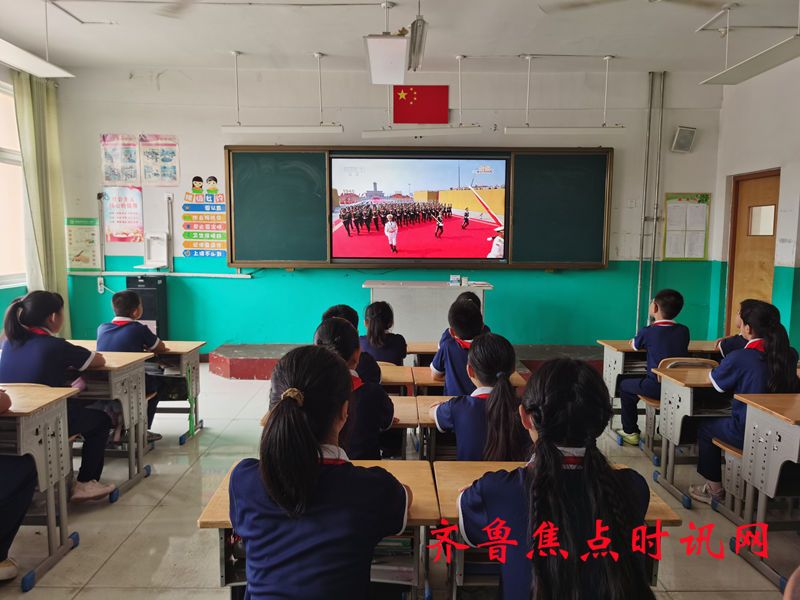 齐鲁焦点时讯(淄博)邵超 2025年9月3日,是一个值得铭记的历史性日子。为纪念中国人民抗日战争暨世界反法西斯战争胜利80周年,盛大的阅兵式在北京天安门广场举行。当天,高青县高城学区中心小学全体师生齐聚校园,数十名师生齐聚主会场,各班级教室作为分会场,通过直播全程观看了这场气势恢宏的国家盛典。一双双专注的眼睛,一颗颗澎湃的心,我们虽远隔千里,却与天安门广场同频共振,共同感受祖国的强大与民族的荣光。
