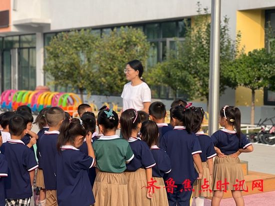 齐鲁焦点时讯(淄博)邵超 2025年9月15日清晨,又是新的一周。高青县木李学区中心幼儿园的操场上,五星红旗伴着朝阳冉冉升起,一场以“勿忘国耻,铭记历史”为主题的升旗仪式在此举行,全体师幼共同缅怀“九一八”事变那段峥嵘岁月。