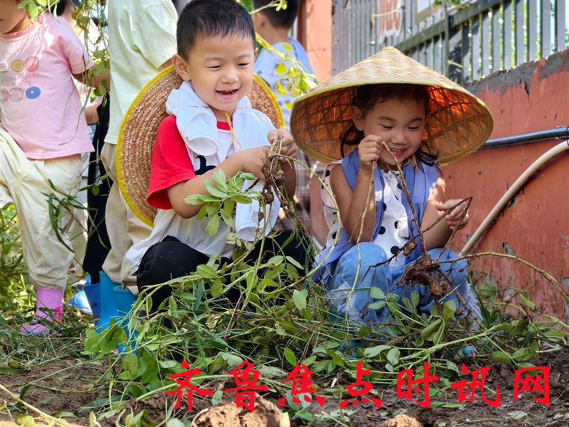 齐鲁焦点时讯(淄博)邵超 近日,高青县长江路幼儿园的实践基地里一片热闹景象——今年春天种下的花生迎来了丰收的日子。一大早,孩子们就兴奋地讨论着要去拔花生,有的小朋友甚至提前把小篮子准备好了。在老师的带领下,孩子们排着整齐的队伍,兴高采烈地来到花生地,准备亲手收获他们期待已久的劳动成果。
