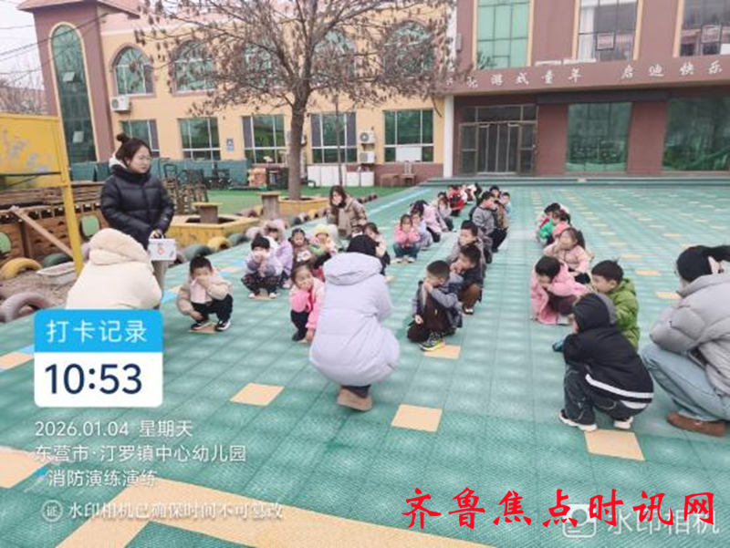 齐鲁焦点时讯(东营)邵超 为进一步增强师幼消防安全意识,提升自救自护能力,筑牢校园消防安全防线,2026年1月4日,汀罗镇中心幼儿园组织全体师幼开展了一场紧张有序的消防应急疏散演练活动。