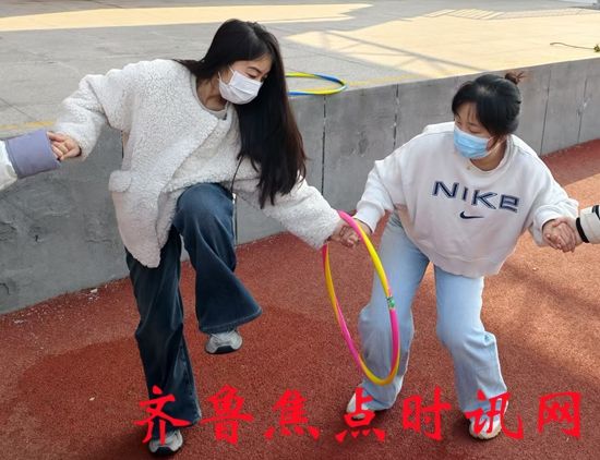 紧接着,团体竞赛项目将现场气氛推向高潮。吸管传递纸杯游戏中,参赛女教职工们巧妙运用吸管,紧张而有序地将纸杯传递至终点,展现了团队间的默契与协作。穿越呼啦圈游戏同样精彩纷呈,各小组齐心协力,以创新的策略和坚定的信念,将呼啦圈迅速穿越全队,赢得了现场阵阵掌声。