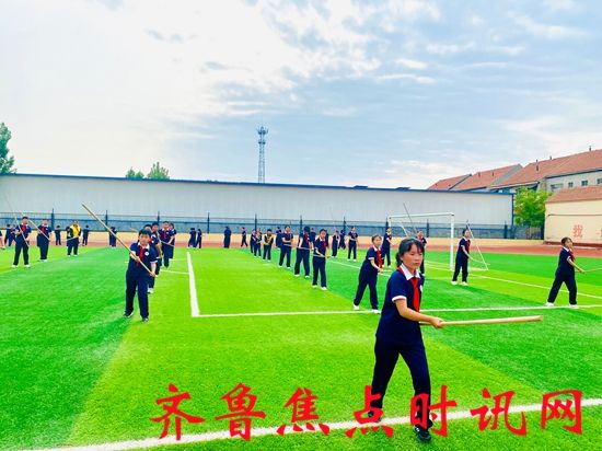 当日上午,随着激昂的音乐响起,高青县高城学区中心小学的学生们精神抖擞、步伐整齐地来到操场,有序开启大课间活动。全校以班级为单位绕操场慢跑,各班在指定位置集合,听到指令后同时出发。全校统一练习武术操,结合抱拳礼、冲拳、推掌等基础武术动作。同学们动作标准有力,一招一式尽显青春朝气;特色活动时间,有的班级开展趣味武术活动。分别是武术基本功 、武术韵律操、五步拳、初级刀术、初级棍术展示,出拳踢腿刚劲有力,虎虎生风,将中华武术的魅力展现得淋漓尽致。