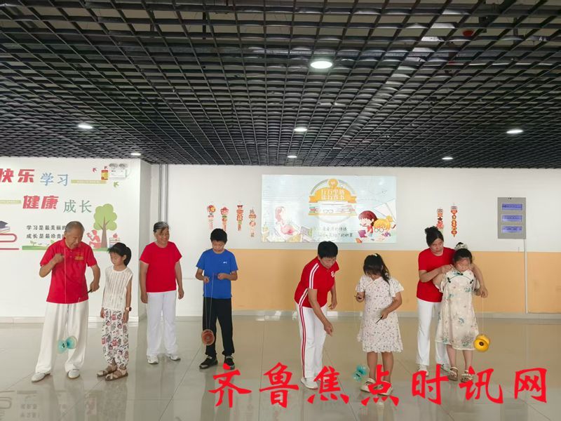 齐鲁焦点时讯(淄博)邵超 7月29日上午,老年大学官庄社区分校资深教师张爱菊与学员骨干走进田镇街道官庄社区“博学”学堂,为学堂注入“”银龄活力”,带领学堂青少年在旋转飞舞的空竹和彩带龙中感受传统文化的独特魅力。