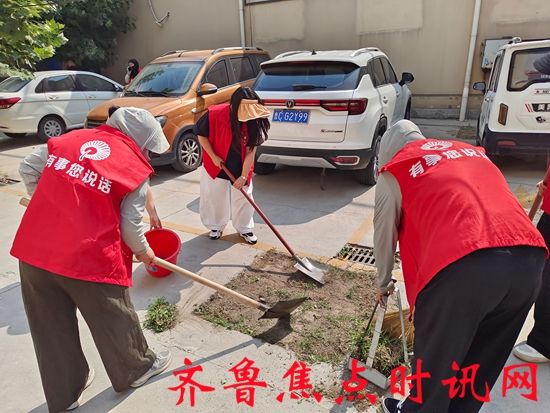 活动现场,志愿者们身着统一服装,满怀热忱地投身于劳动中,他们不怕脏、不怕累,分工明确且配合默契。有的志愿者手持铁锹,专注地铲除院内肆意生长的杂草,一锹一铲,动作干脆利落,将那些影响社区美观与秩序的杂草连根拔起;有的则拿着扫帚,仔细清扫着大院与楼道里堆积的垃圾,从地面的灰尘到角落里的碎屑,都被清扫得干干净净。志愿者们齐心协力,不放过任何一个卫生死角,将院落内的垃圾逐一清理。同时,他们还对垃圾亭进行了全方位的彻底清扫,从亭身到地面,从内到外,都擦拭得一尘不染,垃圾亭在他们的努力下焕然一新。志愿者们的辛勤付出,居民们都看在眼里、记在心上,赢得了大家的一致称赞。不少居民深受感染,纷纷主动加入到清扫队伍中来。一时间,社区内呈现出一片热火朝天的劳动景象,大家齐心协力,不分你我,形成了全民参与的良好氛围。