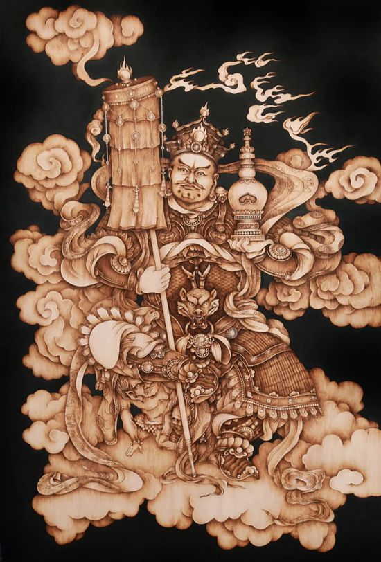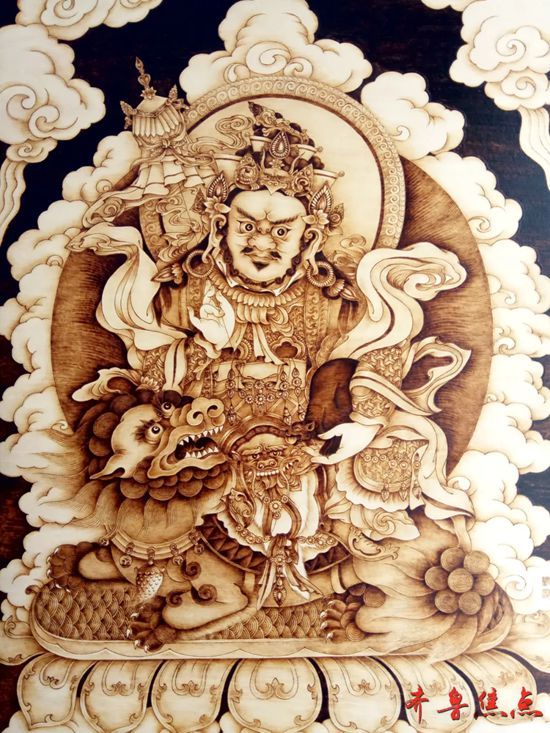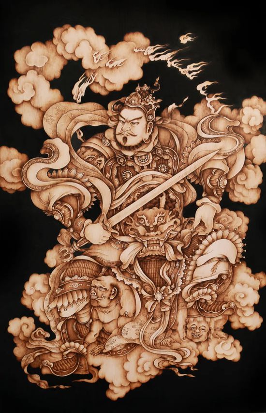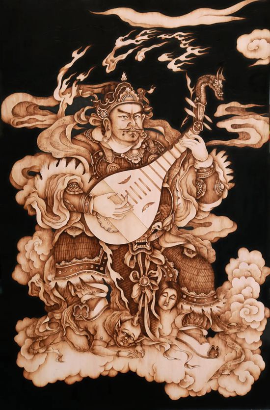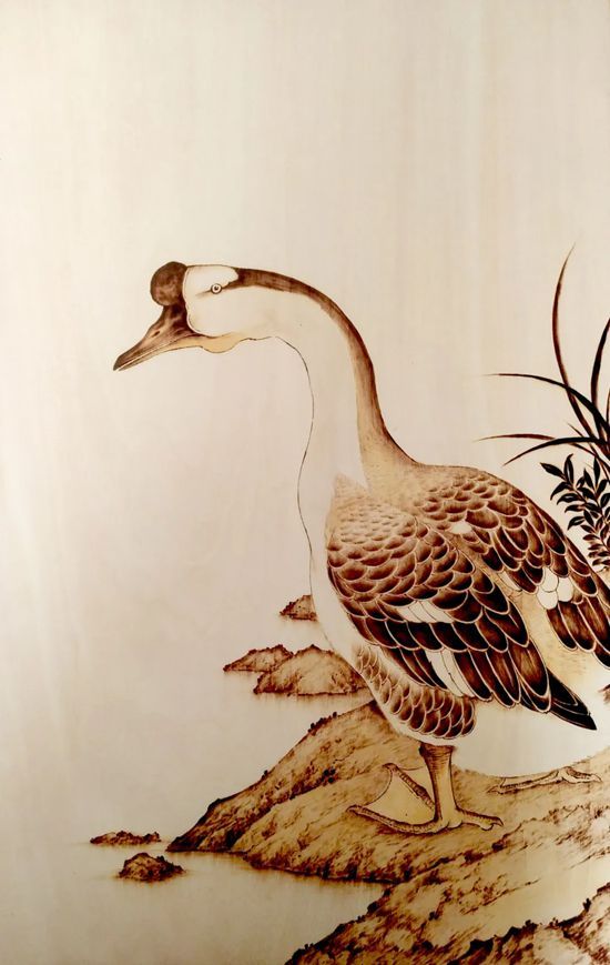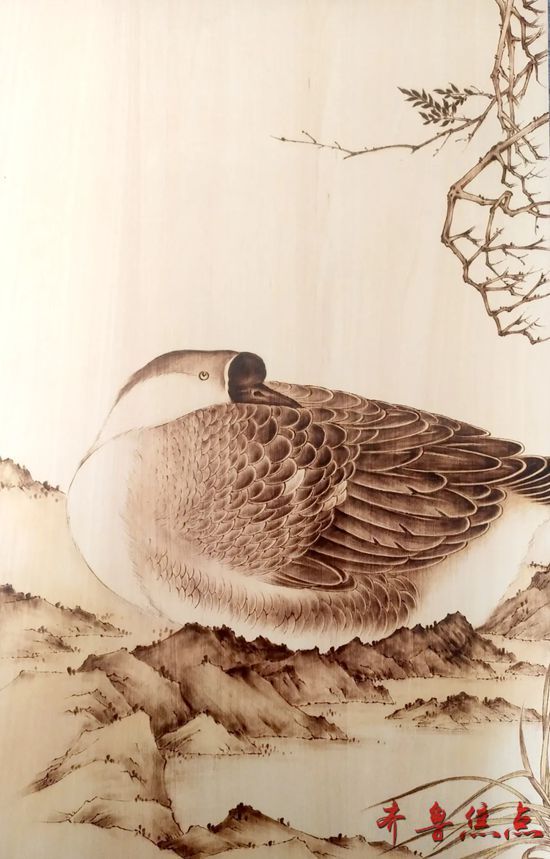 刘浩创作的烙画不仅融合国画的勾、勒、点、染、擦以及白描等手法,还需熨烙出丰富的层次和色调,比国画更具有立体感和视觉冲击力。在平度市旧店镇,平度市非物质文化遗产烙画传承人刘浩以火为墨、以木为纸,数十年如一日坚持作画,在他的工作室里,每天都上演着火与木的碰撞,每幅作品都诠释着力与美的融合。烙画讲究力度和温度,讲究缓急轻重,烙铁笔握在手中,烙铁笔的温度,下笔的力度、角度都决定着作品的品质,任何一个细节都至关重要。