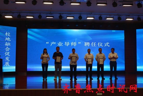在人才互聘环节,高青县副县长金剑为7名山东理工大学高青籍学子颁发“高青县青年推介官”聘书,鼓励青年学子为家乡发展牵线搭桥;山东众皓环保科技有限公司等5家企业代表向山东理工大学5名专家教授颁发“科技副总”聘书,推动产学研深度融合;山东理工大学党委副书记苏守波为山东国井集团等5家企业选聘的“产业导师”颁发聘书,强化校企协同育人机制。随后,校地双方领导共同启动“服务高青月”活动,标志着系列合作正式拉开帷幕。
