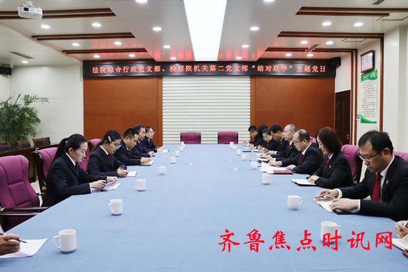齐鲁焦点时讯(东营)邵超 为深入学习贯彻习近平新时代中国特色社会主义思想,进一步凝聚司法共识,推进党建与业务深度融合,11月10日下午,县法院综合行政党支部、县检察院机关第二党支部联合开展了“结对联学强思想 融通互鉴促提升”主题党日活动,县法院党组成员、副院长王学臣,县检察院党组成员、政治部主任刘海宁参加。两个党支部20余名党员通过联学活动,共同上好学习贯彻习近平新时代中国特色社会主义思想主题教育课。