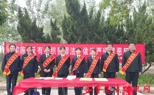 利津县法院参加县委政法委组织的联合普法团队,走进热闹的三里大集开展“民法典与反有组织犯罪法”联合普法活动