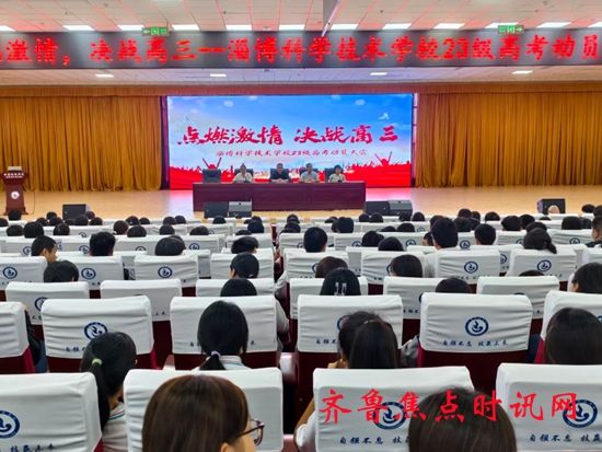 齐鲁焦点时讯(淄博)邵超 春潮涌动催奋进,号角吹响战鼓擂。9月25日,为凝聚全校备考力量,激发高三学子冲刺斗志,明确各学段备考方向,淄博科技学校隆重召开23级春季高考动员大会。学校分管负责人、教师代表、家长代表、全体高三学生及部分高一、高二学生参会,各方力量齐聚一堂,共绘家校协同、师生同心的备考蓝图。