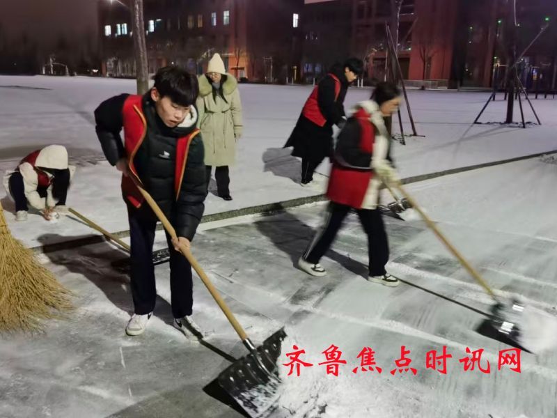 齐鲁焦点时讯(淄博)邵超 近日,淄博地区迎来降雪天气,漫天飞雪为校园披上了银装,却也给师生出行带来了诸多不便,路面结冰湿滑存在安全隐患。1月18日,为保障校园道路畅通与师生出行安全,淄博科技学校迅速响应,连夜号召各班志愿者学生组建扫雪志愿服务队,以雪为令、闻雪而动,开展了一场热火朝天的扫雪除冰活动。