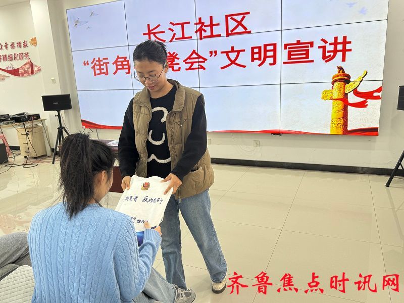 齐鲁焦点时讯(淄博)邵超 为切实提升社区居民的反诈防骗意识和能力,守护好群众的“钱袋子”,1月23日,高青县田镇街道长江社区在社区内组织开展“共话反诈经•守好钱袋子”反诈宣讲活动。