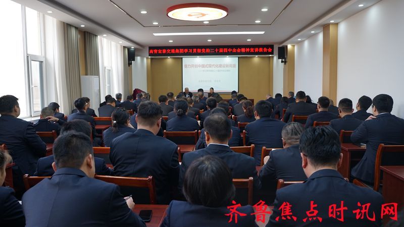 齐鲁焦点时讯(淄博)邵超 12月29日,高青宏泰交通集团组织开展党的二十届四中全会精神宣讲报告会,特邀县委党校教务处主任、讲师孝青利授课。孝老师以《奋力开创中国式现代化建设新局面》为题,为集团全体党员职工带来一堂主题鲜明、内容丰富、分析透彻的宣讲课,为集团高质量发展注入思想动能。